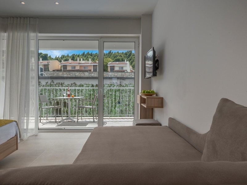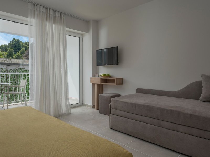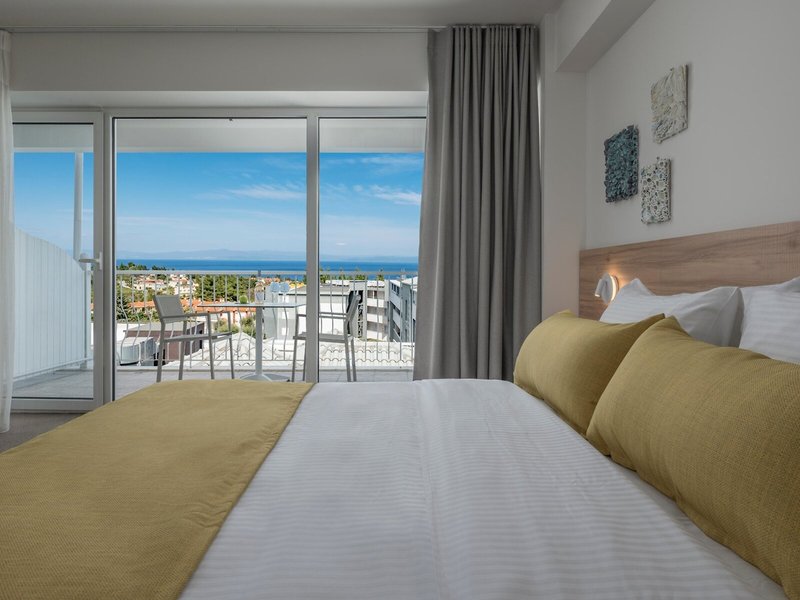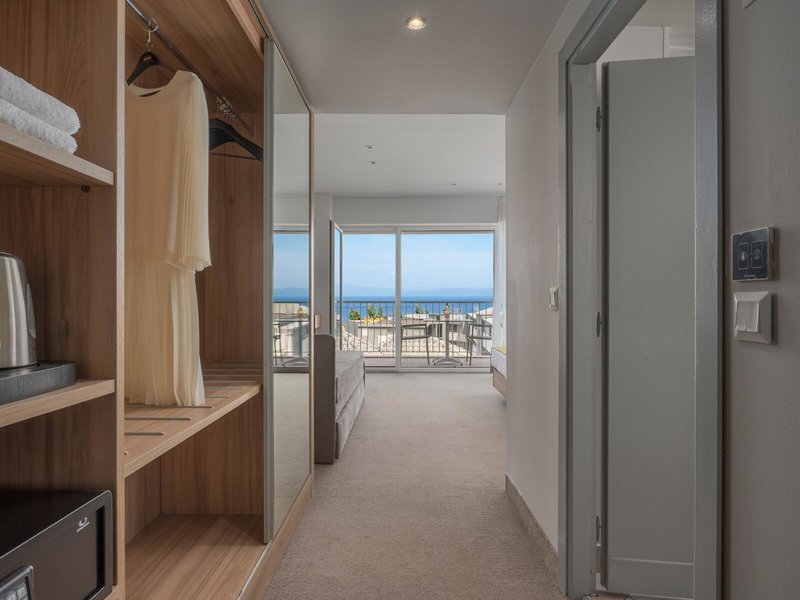 - Comfort Double Sea View (DZM1), dvojlôžková izba, nefajčiarska izba, v hlavnej budove, morská strana, výhľad na more, cca 25 m², posledná kompletná rekonštrukcia v roku 2023, 1 spálňa, 1 manželská posteľ, 1 rozkladacia pohovka, vzduch klimatizácia, trezor, pohovka, telefón, internet: WLAN/WiFi, TV: plochá obrazovka, satelitná TV, izbová služba, upratovacia služba, vaňa alebo sprcha, balkón alebo terasa