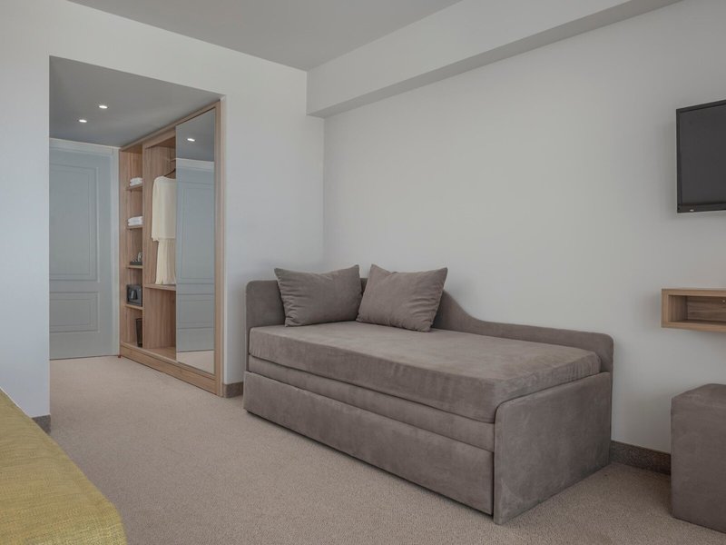 - Comfort Double Sea View (DZM1), Doppelzimmer, Nichtraucherzimmer, im Hauptgebäude, Meerseite, Meerblick, ca. 25 m², letzte Komplettrenovierung 2023, 1 Schlafzimmer, 1 Doppelbett, 1 Schlafsofa, Klimaanlage, Safe, Sofa, Telefon, Internet: WLAN/WiFi, Fernseher: Flatscreen, Sat-TV, Roomservice, Reinigungsservice, Badewanne oder Dusche, Balkon oder Terrasse