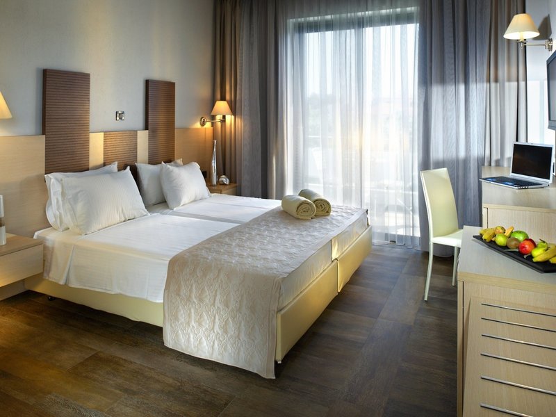- Dvojlôžková izba s bočným výhľadom na more (DZX3), dvojlôžková izba, strana do záhrady, bočný výhľad na more, cca 23 - 25 m², celkový počet izieb v tomto type izby: 1, rozloženie takto: kombinovaná obývacia izba/spálňa, 2 samostatné postele (90x200cm ), 1 rozkladacia pohovka ( 87x193cm), detská postieľka: zadarmo, na vyžiadanie nutná, moskytiéra, klimatizácia: zadarmo, centrálne ovládaná, studená, teplá, podlaha: dlažba, trezor: zadarmo, písací stôl, káva /čajovar, minibar: zdarma, v cene all inclusive , nealko nápoje: v cene all inclusive, voda: zdarma, v cene all inclusive, alkoholické nápoje: v cene all inclusive, plnenie minibaru: niekoľkokrát týždenne 10 :00 - 15:00, telefón, internet: WLAN/WiFi: bez poplatku, TV: plochá obrazovka, nemecké kanály, satelitná TV, izbová služba: za poplatok, upratovanie: denne 9:00 - 3:00 hod., zdarma, vaňa alebo sprcha, WC, župan: zadarmo, papuče: zadarmo, fén, zrkadlo na líčenie, balkón alebo terasa : s posedením