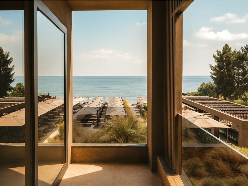 Lage & Umgebung Das Hotel liegt friedlich, etwa 50 m vom Strand entfernt und unweit von Nea Moudania in Chalkidiki. Bis Thessaloniki sind es rund 50 km.