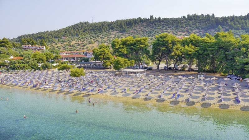 - Piesočnatá/kamienková pláž: oddelená od komplexu cestou, slnečníky (za poplatok), ležadlá (za poplatok), plážový uterák/osuška (za poplatok)