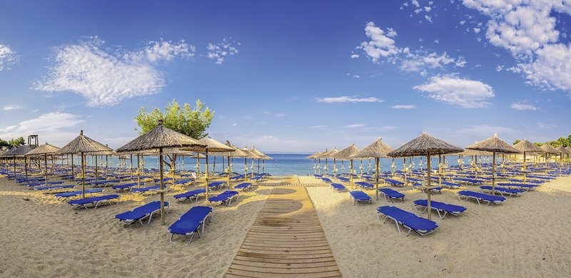 - Sand-/Kieselstrand: von der Anlage getrennt durch Straße, Sonnenschirme (kostenpflichtig), Liegen (kostenpflichtig), Strandtuch/Badetuch (kostenpflichtig)