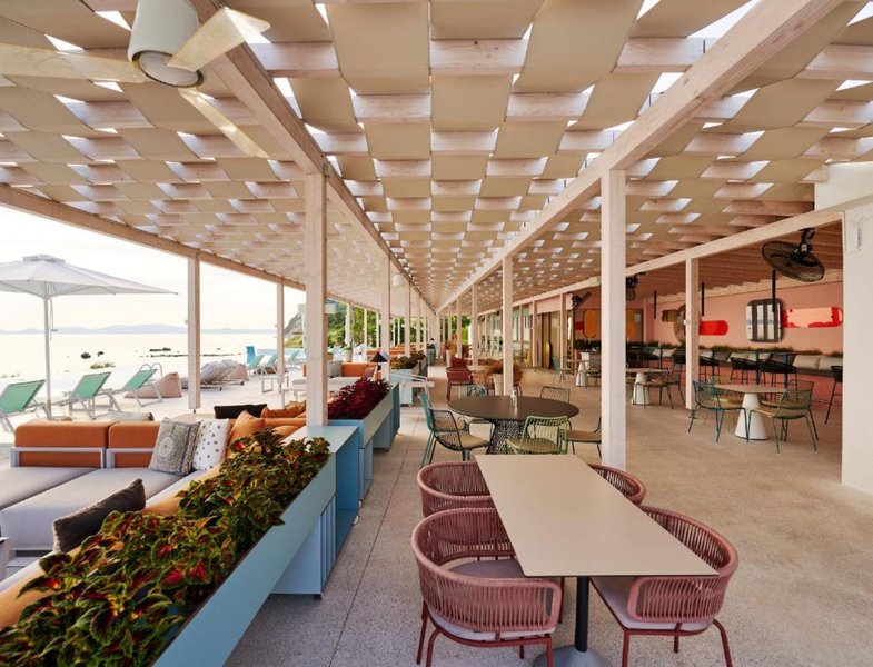 Vybavenie: Tento luxusný hotel ponúka 74 izieb rozmiestnených na troch poschodiach, ktoré pozostávajú z hlavnej budovy a štyroch prístavieb. K vybaveniu patrí vstupná hala s recepciou (check-in od 15:00, check-out do 11:00), výťah v hlavnej budove a salónik a relaxačný bar s krásnou vonkajšou terasou. Wi-Fi je k dispozícii v celom hoteli zadarmo. Hostia si môžu vybrať z hlavnej reštaurácie s vonkajšou terasou, ako aj z à la carte reštaurácie „Leuko Kochili Tavern“ (za poplatok). Vonkajší priestor sa môže pochváliť vyhrievaným nekonečným bazénom s úchvatným výhľadom na more, slnečnou terasou a snack barom pri bazéne. Lehátka a slnečníky sú k dispozícii pri bazéne a na pláži zadarmo.