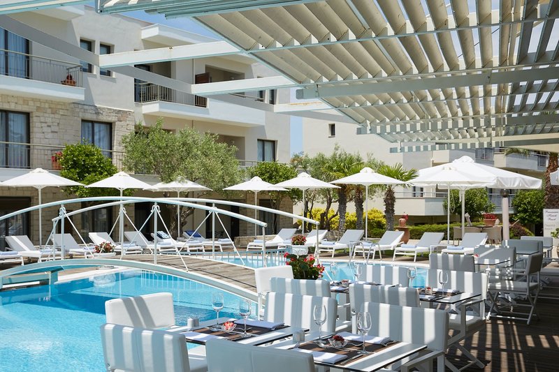Ausstattung: Die moderne Anlage verfügt über Empfangshalle mit Rezeption, Sitzgelegenheiten, ein Restaurant mit einer schönen Außenterrasse, Lounge mit Bar, Sat.-TV-Ecke und öffentliche Parkplätze. Wi-Fi ist in der gesamten Anlage inklusive. Im Außenbereich finden Sie einen sehr schönen Pool mit Liegen und Schirmen (inklusive, am Strand gegen Gebühr) und eine Pool-/Snackbar. Pooltücher erhalten Sie an der Rezeption (inklusive).