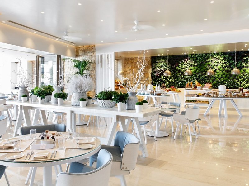 - Reštaurácia Cabana: Kuchyňa: Grécka, Medzinárodná, Stredomorská; Detská výživa: na požiadanie; Bezlepkové jedlá: nutná rezervácia; Detské menu; Bezlaktózové jedlá: na požiadanie; Ľahké jedlá; Vegetariánske jedlá; à la carte; Set menu; Dine Around; Rezervácia nutná; Apríl - október; 8:30 - 10:30, 13:00 - 16:00 a 18:30 - 21:00; s terasou; na pláži; K dispozícii je detská stolička; Vyžaduje sa elegantný neformálny dress code.