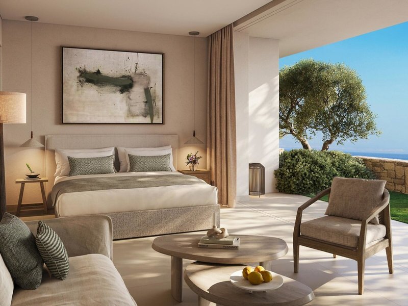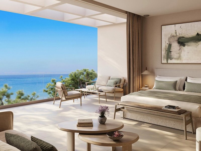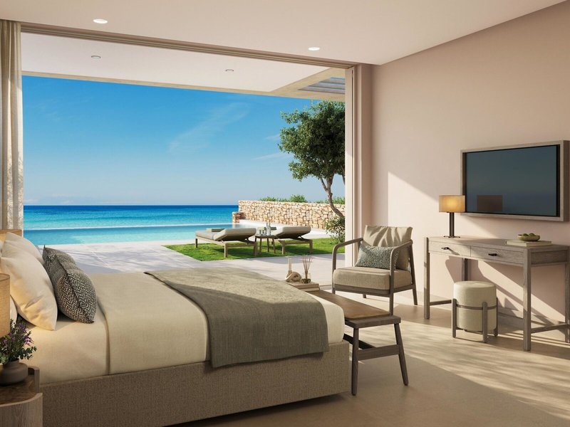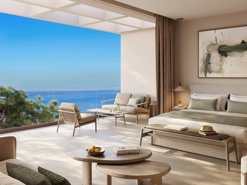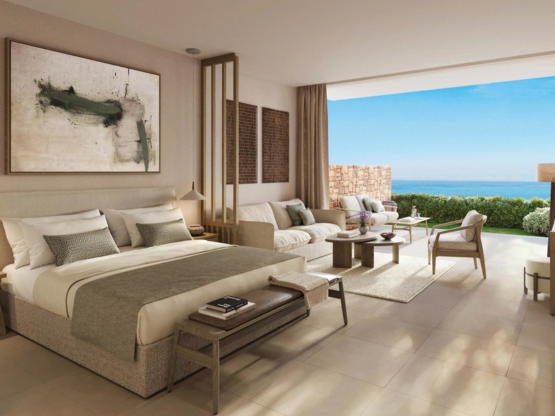 - double room ground floor sea view (DZM1), Doppelzimmer, Nichtraucherzimmer, im Nebengebäude, Meerblick, ca. 40 m², Gesamtanzahl der Räume in diesem Zimmertyp: 1, Aufteilung wie folgt: kombiniertes Wohn-/Schlafzimmer, 1 Queen Size Bett, 1 Schlafsofa, Babybett: ohne Gebühr, Klimaanlage: ohne Gebühr, individuell regelbar, kalt, warm, Fußboden: Fliesenboden, Safe, Sitzecke, Sofa, Nespressomaschine, Kaffee-/Teezubereiter, Wasserkocher, Minibar: gegen Gebühr, Softdrinks: gegen Gebühr, Wasser: ohne Gebühr, alkoholische Getränke: gegen Gebühr, Snacks: gegen Gebühr, Minibarauffüllung: täglich, Internet: WLAN/WiFi: ohne Gebühr, Fernseher: Flatscreen, im Schlafzimmer, deutsches Programm, Sat-TV, DVD-Player, CD-Player, Roomservice: gegen Gebühr, Reinigungsservice: täglich, ohne Gebühr, separate Dusche, Badewanne, Bademantel: ohne Gebühr, Slipper: ohne Gebühr, Föhn, Terrasse: mit Sitzgelegenheit