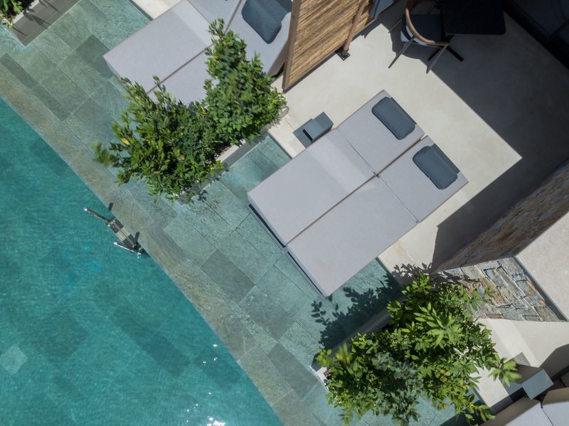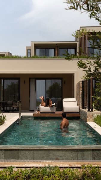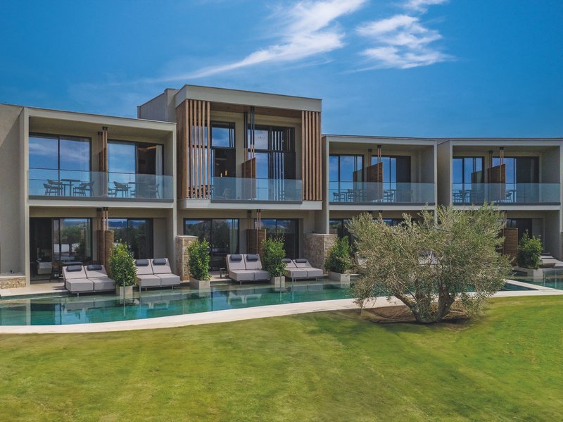 Vybavenie: Tento rezort pre hostí vo veku 16 a viac rokov ponúka 104 izieb a apartmánov s moderným dizajnom s prvkami boho. Súčasťou je aj vstupná hala s 24-hodinovou recepciou, hlavná reštaurácia „Mesogaea“ (stredomorská kuchyňa), reštaurácia à la carte „Shizen“ (japonská/peruánska fusion kuchyňa) a lobby bar/kaviareň „Hebe“. V stredomorskej záhrade sa nachádzajú dva bazény a snack bar pri bazéne „Zest“. Hostia si môžu jednoducho objednať jedlo a nápoje priamo na svoje ležadlá pri bazéne. Lehátka a slnečníky sú pri bazéne k dispozícii bezplatne. Wi-Fi pripojenie na internet je k dispozícii bezplatne v celom rezorte a v izbách.