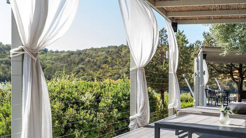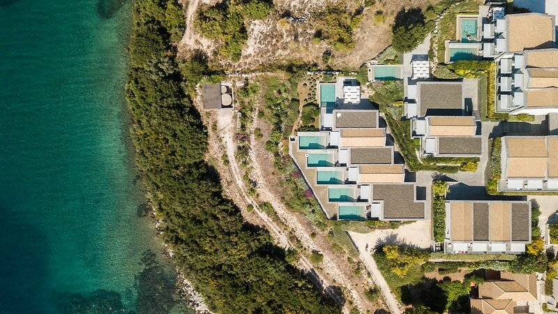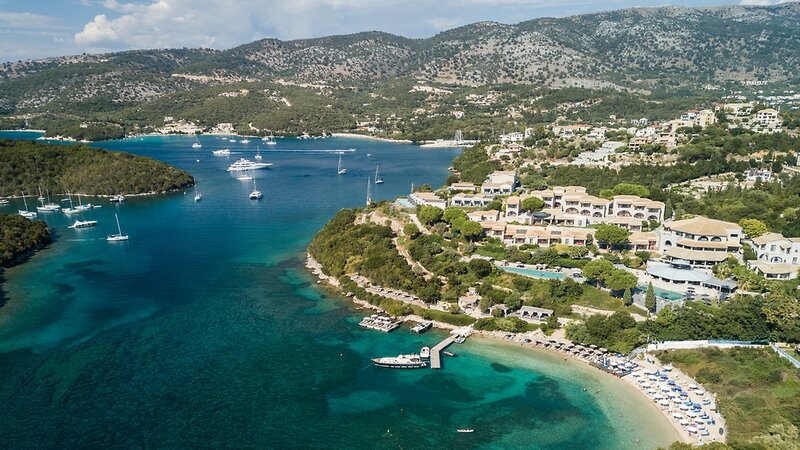 Das 5-Sterne-Hotel Agios Nikolaos Resort liegt leicht erhöht oberhalb von Sivota im Nordwesten von Griechenland. Die komfortabel eingerichteten Zimmer sind terrassenförmig angelegt. Kleine Steinwege verbinden die gesamte Hotelanlage, eine Treppe führt zum hoteleigenen Strand mit Liegen und Sonnenschirmen.