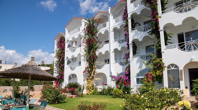 Rodinou prevádzkovaný apartmánový hotel sa nachádza priamo na dlhej pláži Vrachos. Všetky izby majú balkón s výhľadom na more a ponúkajú fantastický výhľad na more. V blízkosti je množstvo taverien a barov a na svoje si prídu aj aktívni hostia na pláži. Oproti Parge je tu trochu tichšie. Mierne sa zvažujúci vstup do mora je ideálny pre rodiny s deťmi.