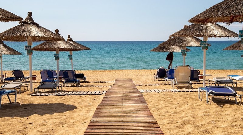Strände: Der Strand Vrachos Beach liegt direkt beim Hotel (3,5 km langer Sand-/Kiesstrand, Liegen und Sonnenschirme inklusive, Strandservice mit Getränken und kleinen Snacks). Weitere Informationen finden Sie in unserem Strandführer.