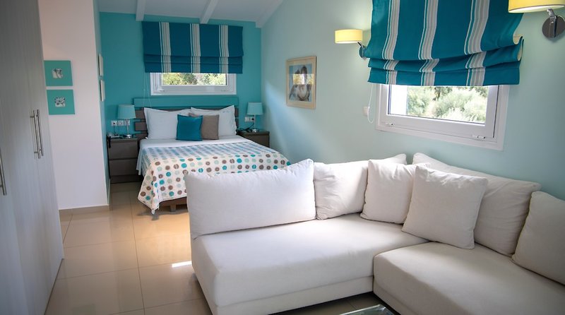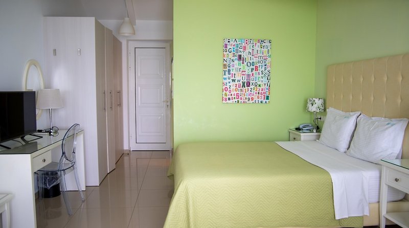 Dvojlôžková izba Superior (cca 25 m²): Štúdio Superior pre maximálne dve osoby s francúzskou manželskou posteľou, kúpeľňou so sprchovacím kútom, sušičom vlasov, klimatizáciou, TV, trezorom, Wi-Fi pripojením, malou chladničkou, kávovarom, rýchlovarnou kanvicou a zariadeným balkónom alebo terasou s výhľadom na more.