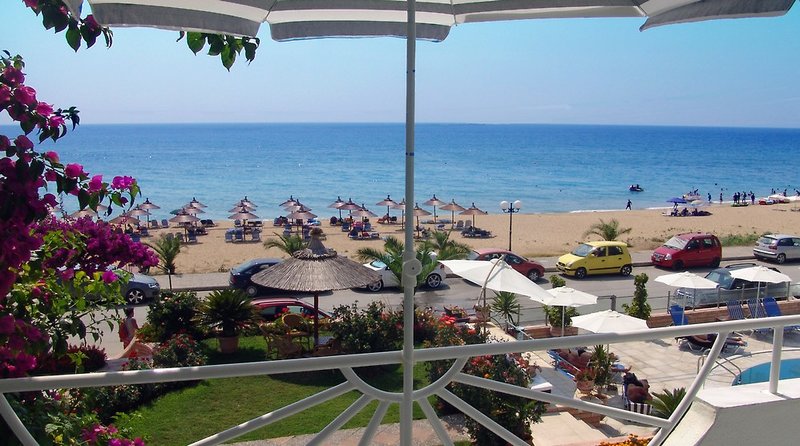 Das familiär geführte Aparthotel liegt direkt am langen Vrachos Beach. Alle Zimmer haben einen Balkon mit Meerblick und bieten einen fantastischen Ausblick aufs Meer. Viele Tavernen und Bars liegen in der Nähe und auch aktive Gäste kommen am Strand auf ihre Kosten. Im Gegensatz zu Parga ist es hier etwas ruhiger. Der flach abfallende Einstieg ins Meer ist ideal für Familien mit Kindern.