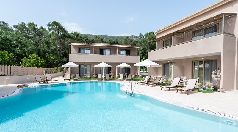 Das Hotel ist ideal für Paare, die ein ruhiges Feriendomizil suchen. Den Gästen stehen sehr modern ausgestattete Doppelzimmer oder Maisonetten zur Wahl, die teilweise auch über einen Privatpool verfügen. Relaxen lässt es sich am schönen Pool oder am beliebten Valtos Beach. Hier finden Sie ein vielfältiges Angebot an Wassersportmöglichkeiten, Restaurants und Bars. Das schöne Städtchen Parga ist zu Fuß erreichbar.