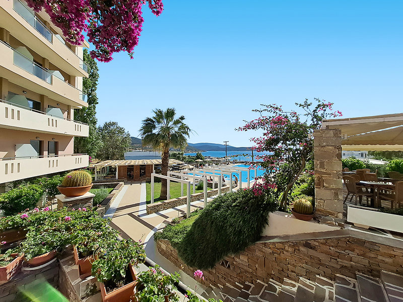 Ausstattung: Beliebtes, amphitheatralisch gebautes Hotel unter herzlicher, familiärer Führung. Swimmingpool, Sonnenterrasse mit Liegen und Schirme, Poolbar. Empfangshalle mit Rezeption, WLAN, La Veranda Buffet Restaurant, Italienisches à-la-carte-Restaurant 'Marmari Bay Italian Restaurant', Bibliothek, Souveniershop. Landeskategorie: 4 Sterne, 101 Zimmer