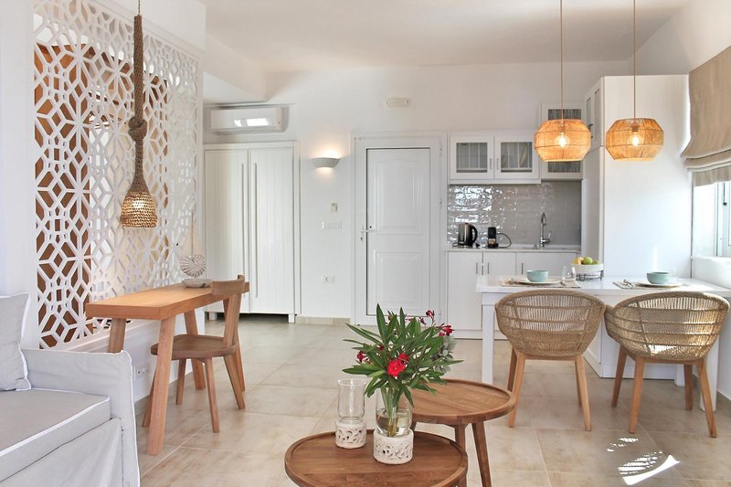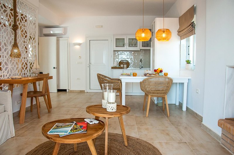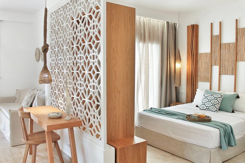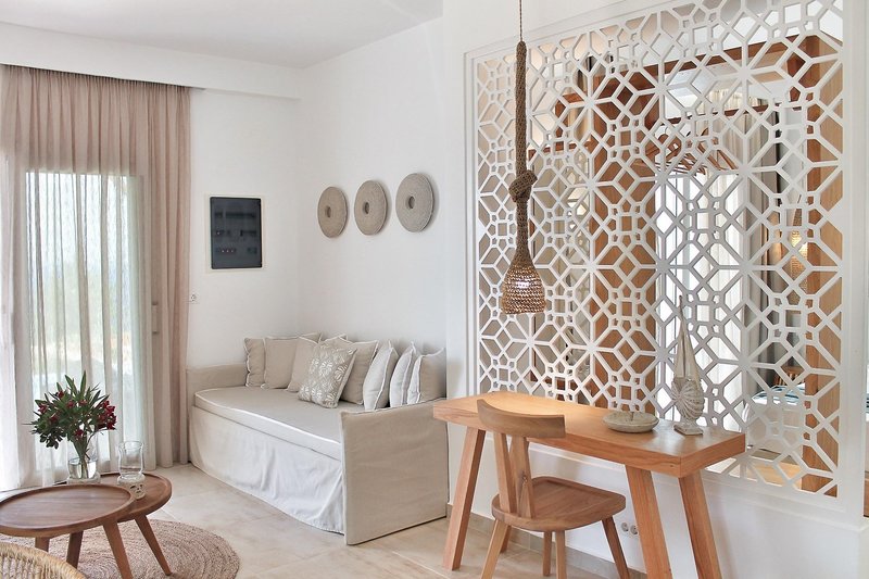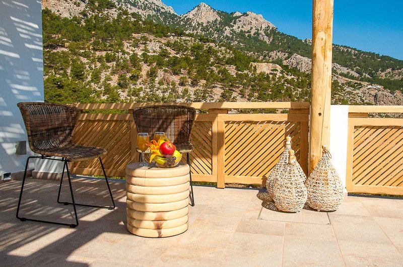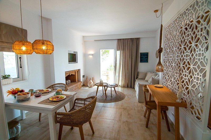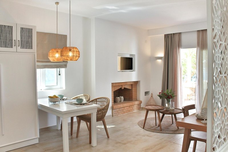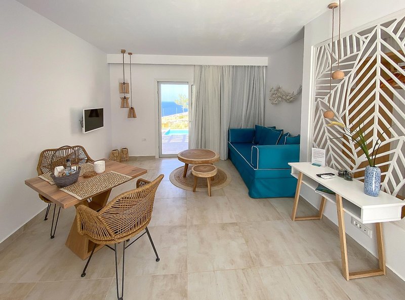 Akropolis Village befindet sich an der Ostseite der Insel, in Kyra Panagia und an einen der schönsten Strände der Insel. Auf der Spitze des Kyra Panagia Felsen, neben der Kapelle, können Sie einen spektakulären Blick auf die Ägäis genießen! Die 4 elegante Wohneinheiten nur für Erwachsene verfügen alle über einen privaten Swimmingpool auf der Terrasse mit herrlichem Blick auf das Meer und die Berge.