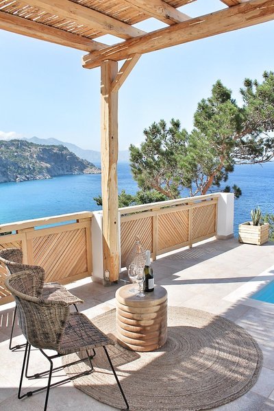 - terasa s vlastným bazénom, ležadlami a výhľadom na more