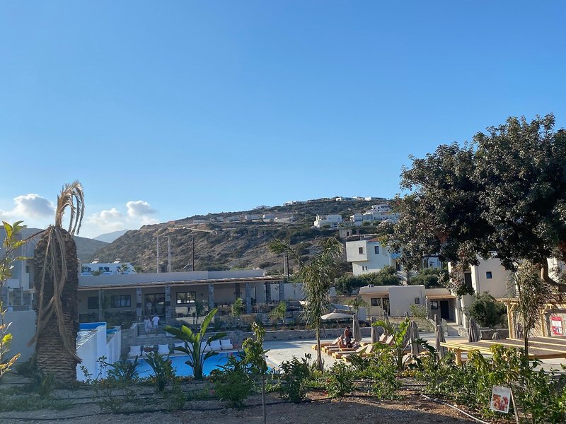 Lage & Umgebung Nur wenige Schritte entfernt von den herrlichen Buchten von Amoopi mit Sandstränden liegt das Hotel von der Hauptstadt Pigadia ca. 7 km entfernt. Eine Bushaltestelle befindet sich ca. 50 m entfernt. Transferzeit: ca. 25 - 50 Minuten.