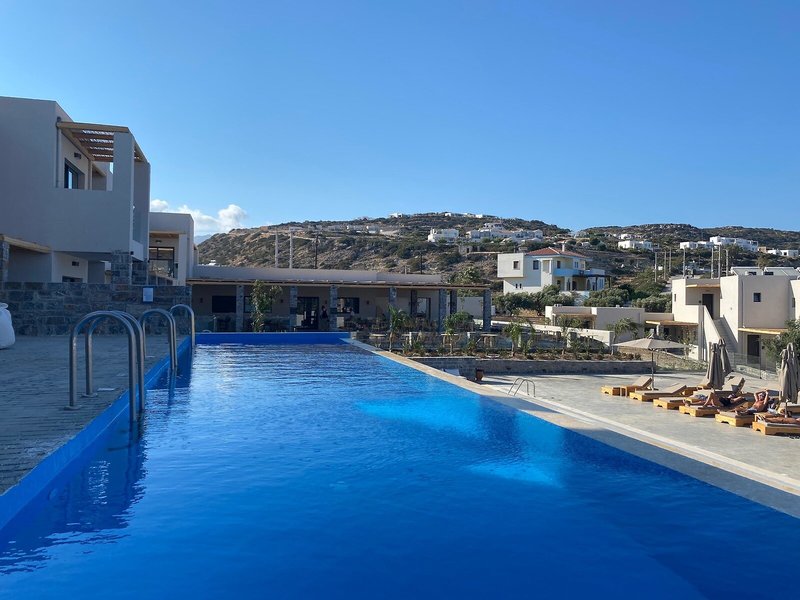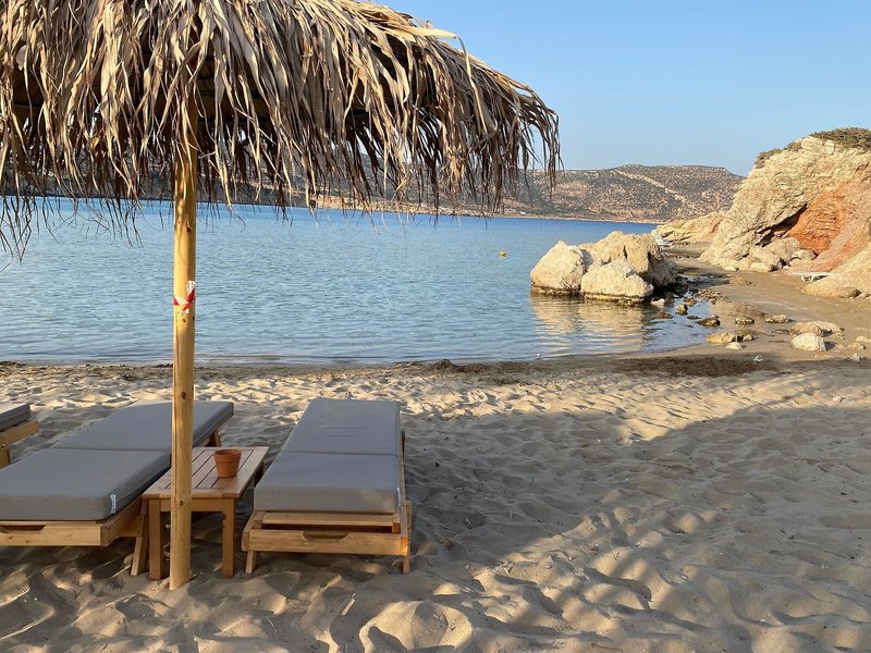 - Strand „MEGALI AMOOPI“: Sand, öffentlich mit eigenem Hotelabschnitt, Liegestühle: gegen Gebühr, Sonnenschirme: gegen Gebühr