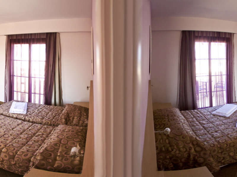 - Dvojstranný výhľad na more (DZM2), dvojlôžková izba, minimálny vek v izbe: 2 roky, strana bazéna, strana záhrady, výhľad na more, bočný výhľad na more, cca 22 - 24 m², posledná kompletná rekonštrukcia v roku 2010, celkový počet izieb v tento typ izby: 1, rozloženie: 1 spálňa, 2 samostatné postele (90x200cm), detská postieľka: na vyžiadanie a rezervácia nutná, klimatizácia: zadarmo, individuálne nastaviteľná, studená, teplá, podlaha: dláždená podlaha, trezor: zadarmo za poplatok, telefón, TV s plochou obrazovkou, SAT TV, rádio, upratovanie: Po - So 10:30 - 15:00, sprcha, WC, papuče, fén, kozmetické zrkadlo, balkón.