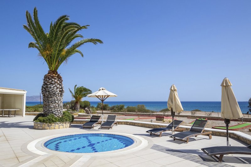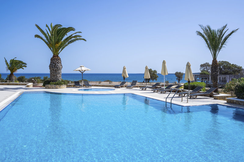 Rund 30 m vom Kiesstrand entfernt gelegenes Hotel. Am Strand sind Sonnenliegen gegen Pfand verfügbar. Die Stadt Karpathos ist ca. 13 km entfernt (Airport ca. 2 km, Arkasa ca. 10 km). Zur ärztlichen Versorgung im Notfall befindet sich ein Krankenhaus in etwa 14 km Entfernung. Der Flughafen (AOK) ist in unmittelbarer Nähe zu finden.