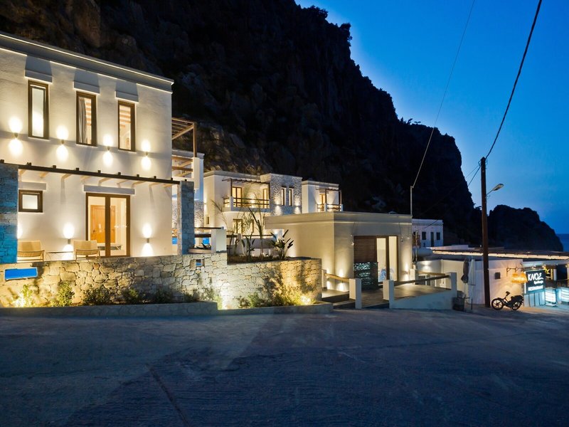Lage & Umgebung Das Suite-Hotel befindet sich in einem verträumten Ort unmittelbar am schönen Strand von Kyra Panagia. Von hier lassen sich wunderbar die zauberhaften Buchten und die herrliche Berglandschaft erkunden. Der Hauptort Karpathos-Stadt mit seinen historischen Sehenswürdigkeiten ist etwa 14 km entfernt.