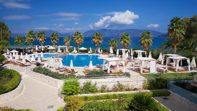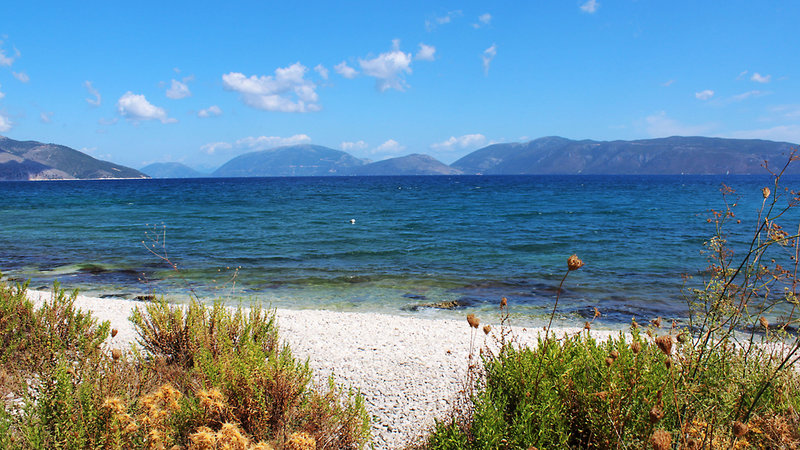 Die wunderschöne Lage macht das gehobene Hotel zu einer beliebten Unterkunft. Direkt über eine kleine Straße erreichen Sie einen wunderschönen, weißen Kiesstrand mit glasklarem Wasser. Das Örtchen Karavomilos bietet ein paar Tavernen und ist ein idealer Ausgangspunkt für Ausflüge zum bekannten unterirdischen Melissani-See und zur Drogarati Tropfsteinhöhle.