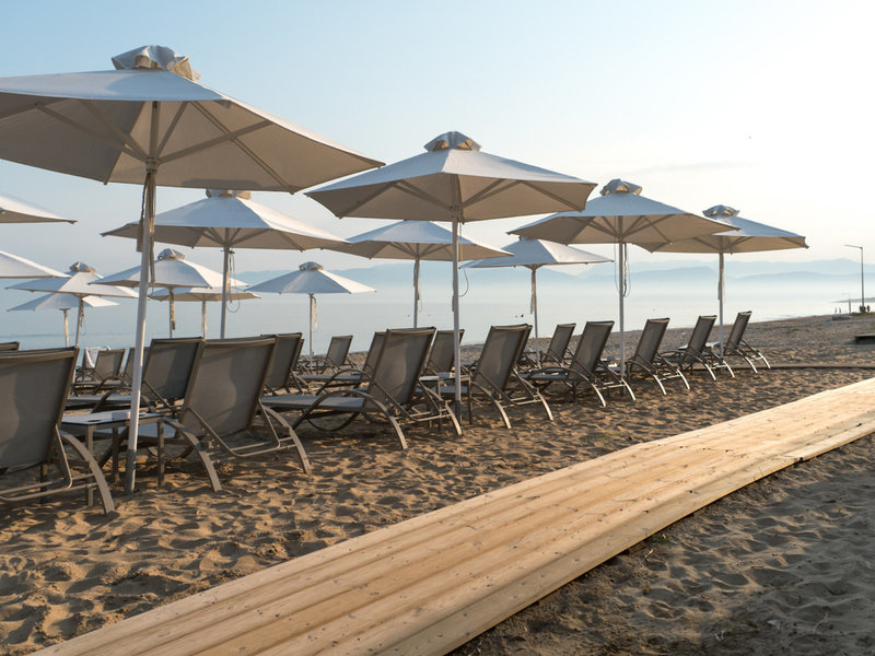 Poloha a okolie Nachádza sa priamo na dlhej piesočnatej/kamienkovej pláži. Do centra mesta s tavernami, reštauráciami a obchodmi je to cca 500 m.