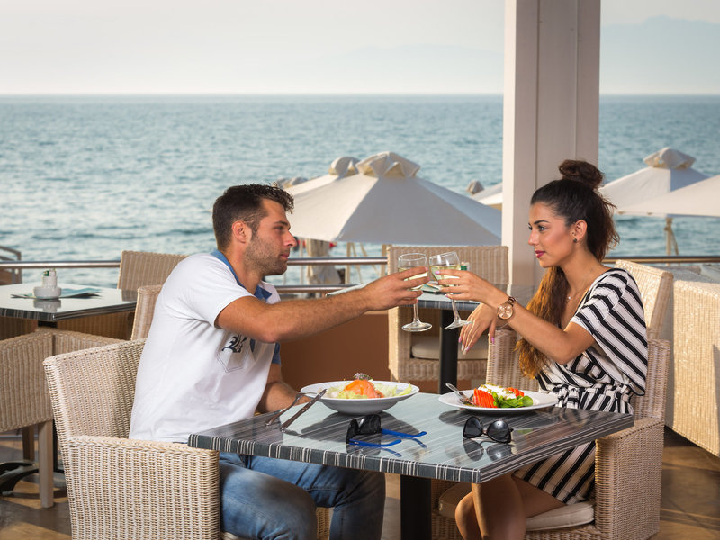 - Hlavná reštaurácia: Kuchyňa: grécka, typická, stredomorská, regionálna, grilované jedlá, bezlepkové jedlá: bez poplatku, nutná rezervácia, bezlaktózové jedlá: bez poplatku, na vyžiadanie nutná, vegetariánske jedlá: bez poplatku, nutná rezervácia, bufet, nie za poplatok, klimatizované, s terasou, vysoká stolička, vhodné oblečenie