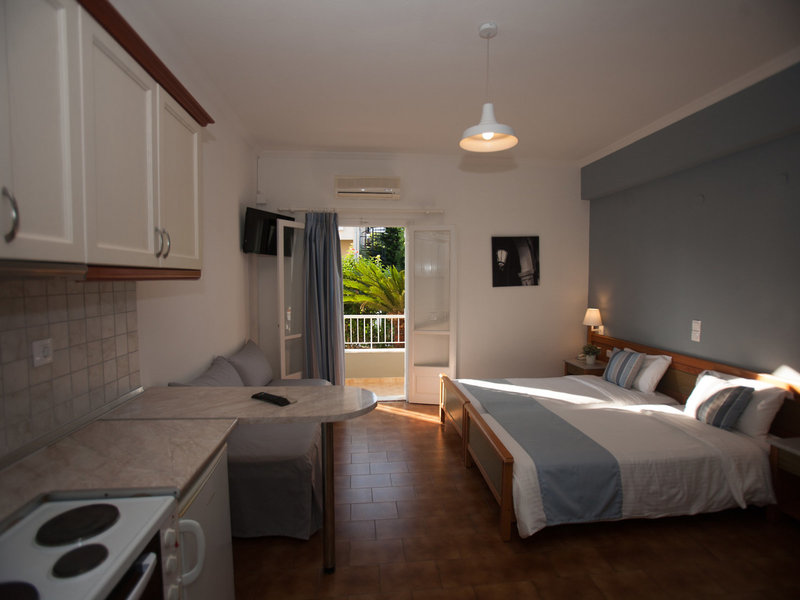- Štúdio Land View (STX2), štúdio, v prístavbe, strana ulice, výhľad na pozemok, cca 25 m², posledná kompletná rekonštrukcia v roku 2016, celkový počet izieb v tomto type izby: 1, rozloženie: 1 spálňa, detská postieľka : zadarmo, moskytiéra, klimatizácia: zadarmo, individuálne nastaviteľná, studená, teplá, podlaha: dlažba, kuchynský kút, chladnička: zadarmo, telefón, Internet: WLAN/WiFi: zadarmo, TV: byt obrazovka, nemecké programy, satelitná TV, upratovanie: zdarma, sprcha, WC, fén, kozmetické zrkadlo, balkón alebo terasa: s posedením