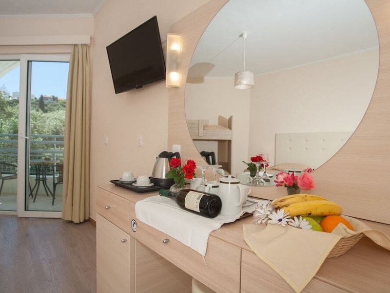 Poloha a okolie Hotel sa nachádza v centre mesta Perama, približne 50 metrov od najbližšej verejnej dopravy a približne 100 metrov od mora. Hotel s kláštorom Vlacherna zo 17. storočia spája 300 metrov dlhá hrádza. Nachádza sa približne 5 km od mesta Korfu, neďaleko ústia lagúny Halikiopoulos. Odtiaľto môžete tiež vidieť svetoznámy Myší ostrov Pontikonisi, na ktorý sa dostanete loďou z malého móla v Agios Nikolaos.