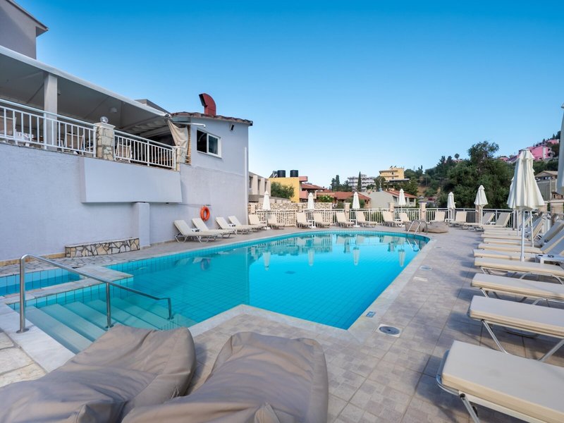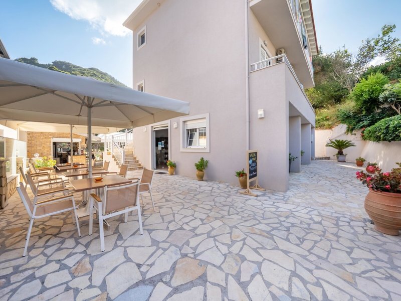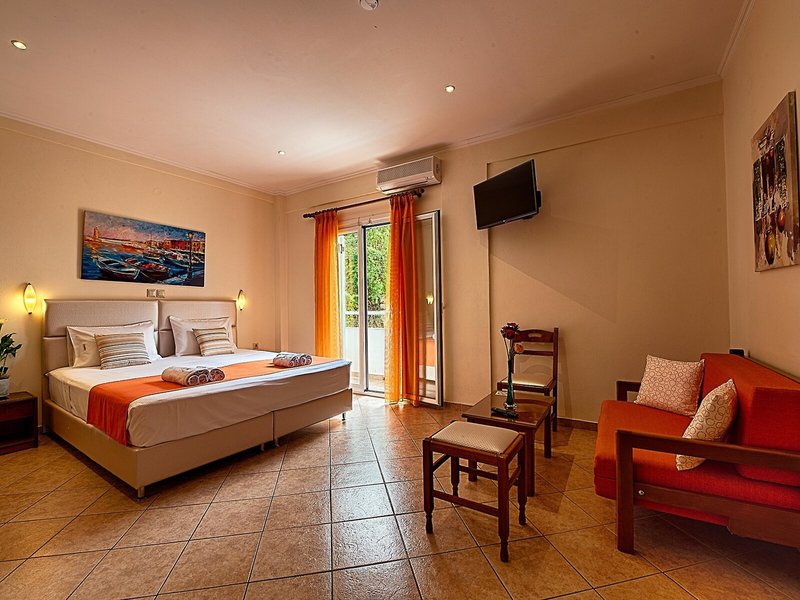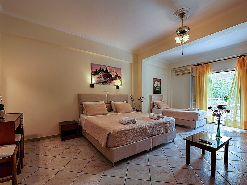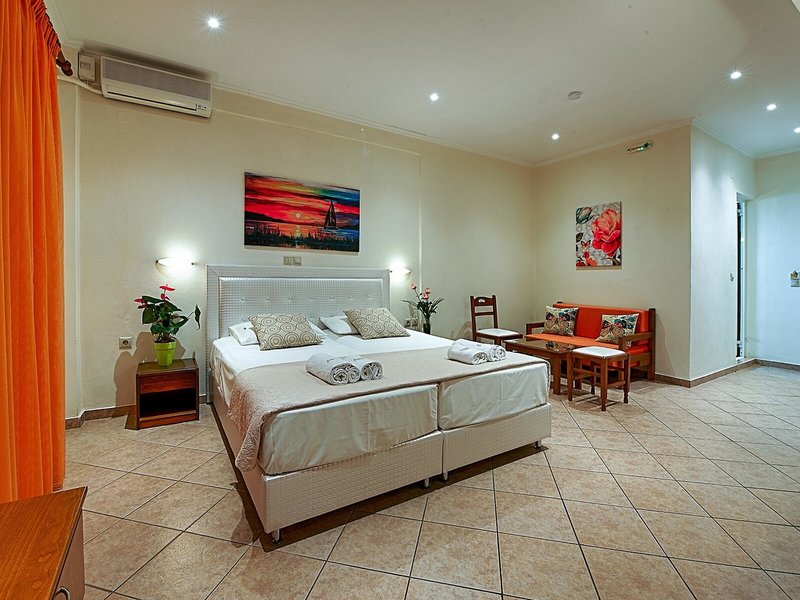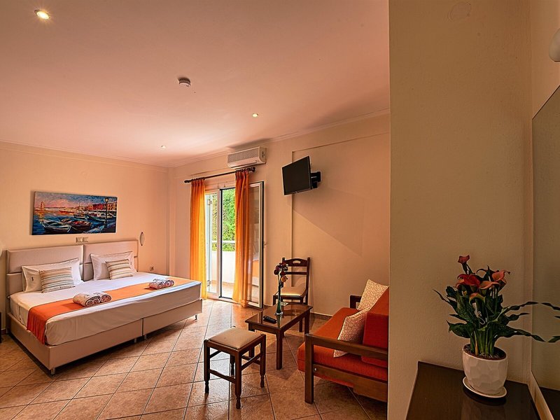 Lage & Umgebung Eingebettet zwischen Strand und Olivenhainen bietet die Unterkunft ideale Bedingungen. Das Ortszentrum erreicht man nach ca. 500 m, Korfu-Stadt nach ca. 25 km. Beliebte Strände und Tavernen befinden sich in ca. 200 m Entfernung.