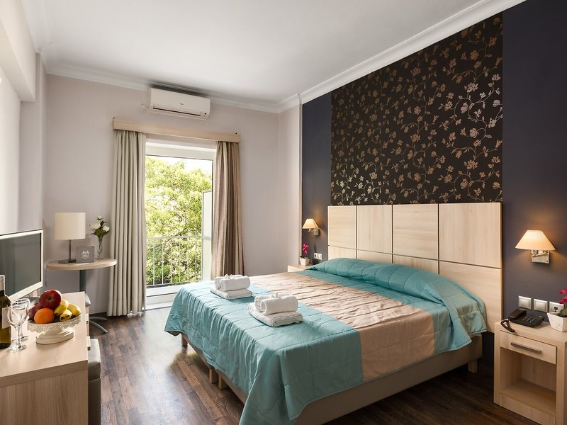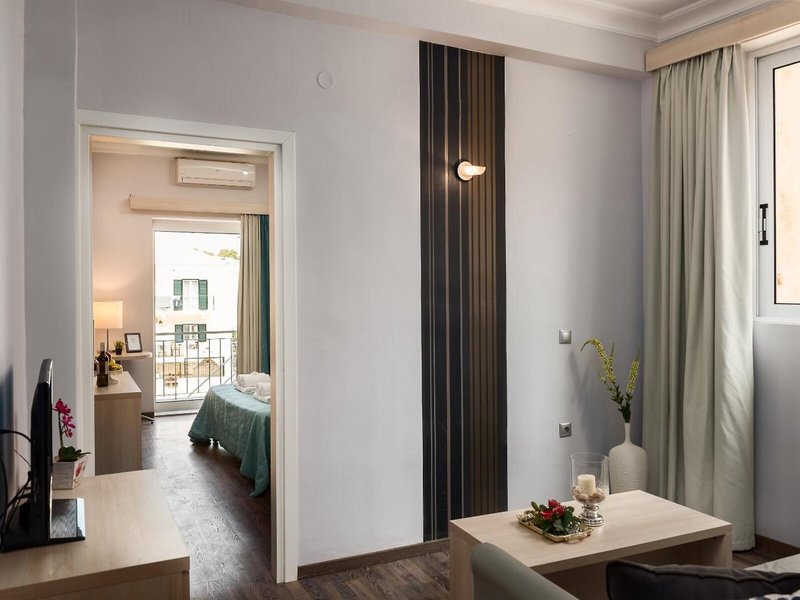 Lage & Umgebung Das Hotel befindet sich in einem wunderschön restaurierten, neoklassischen Herrenhaus. Es ist eine Oase der Ruhe im Herzen von Korfus lebhafter Inselhauptstadt. Es liegt in einer ruhigen Seitenstraße, nur wenige Meter der historischen Spianada von Korfu-Stadt entfernt.