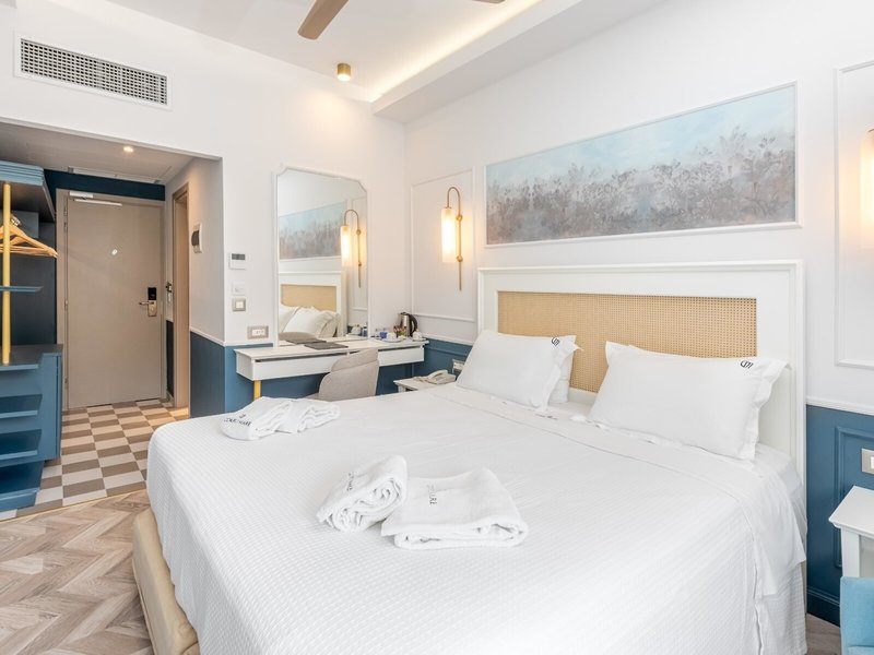 - Suita (SUX1), suita, nefajčiarska izba, v hlavnej budove, výhľad na bazén, celkový počet izieb v tomto type izby: 2, 1 manželská posteľ (180x200cm), moskytiéra, klimatizácia: individuálne nastaviteľná, studená, teplá , podlaha: dlažba, trezor: zdarma, pohovka , písací stôl, sušička, Nespresso kávovar, kávovar/čajník, minibar: za poplatok, telefón, TV: plochá obrazovka, v spálni, nem. Program, sprcha, balkón: s posedením