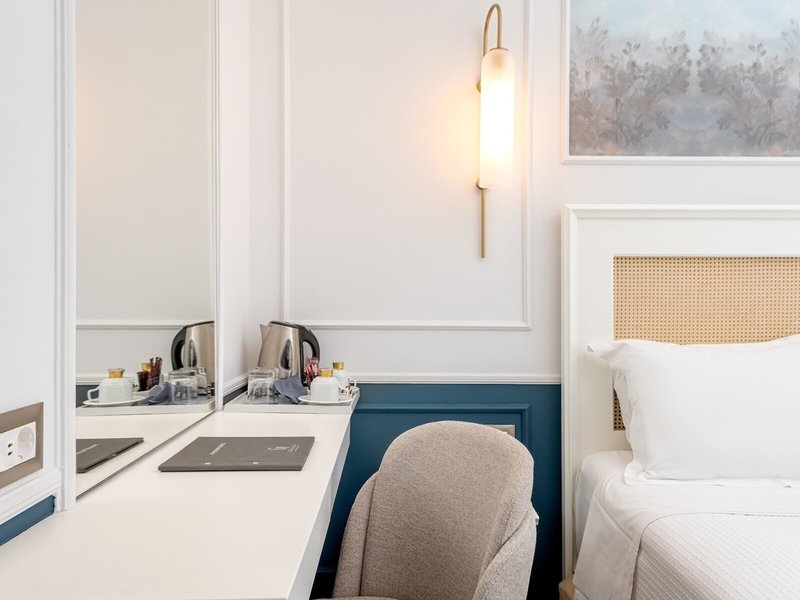 - Double Single Use (DZX3), Nichtraucherzimmer, im Hauptgebäude, Klimaanlage: individuell regelbar, kalt, Fußboden: Laminat, Safe, Schreibtisch, Kaffee-/Teezubereiter, Minibar: gegen Gebühr, Softdrinks: gegen Gebühr, Wasser: gegen Gebühr, Telefon, Internet: WLAN/WiFi, Fernseher: im Schlafzimmer, deutsches Programm, Roomservice: 07:30 Uhr - 23:00 Uhr, gegen Gebühr, Dusche, Balkon oder Terrasse: mit Sitzgelegenheit