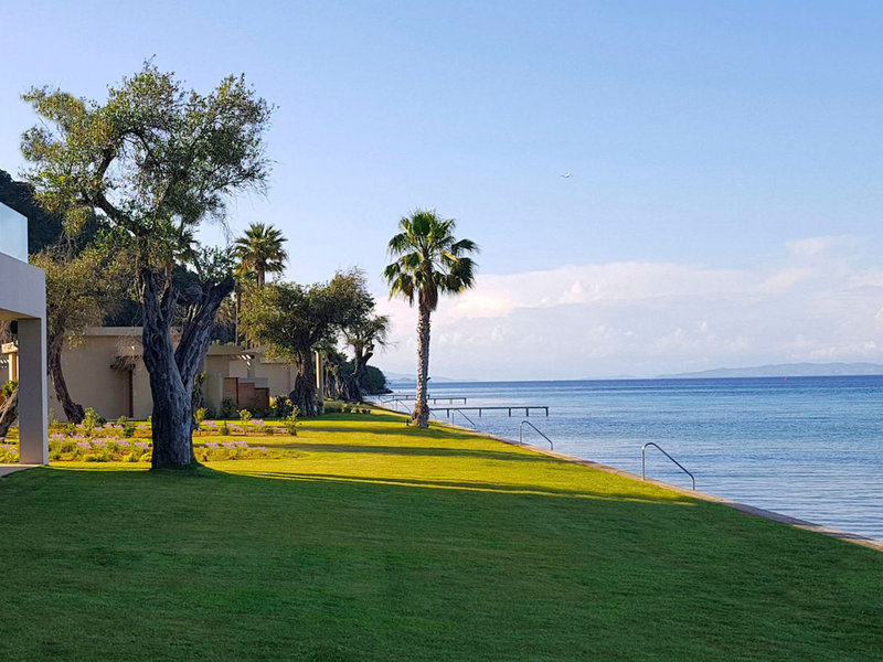Poloha a okolie: Rezort sa môže pochváliť súkromnou plážou priamo pred hotelom s ležadlami. Bezprostredné okolie je príjemne tiché. Pre tých, ktorí hľadajú nočný život, centrum mesta Korfu, vzdialené približne 20 kilometrov, ponúka množstvo barov a nočných klubov.