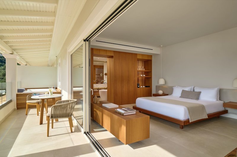 Juniorsuite Fabulous Bay-/Seaview: Die äußerst komfortablen und von Panoramafenstern umgebenen Fabulous Bay Juniorsuiten sind für zwei Personen konzipiert und bieten eine Mischung aus modernem Luxus und einem faszinierenden Blick auf das Ionische Meer.