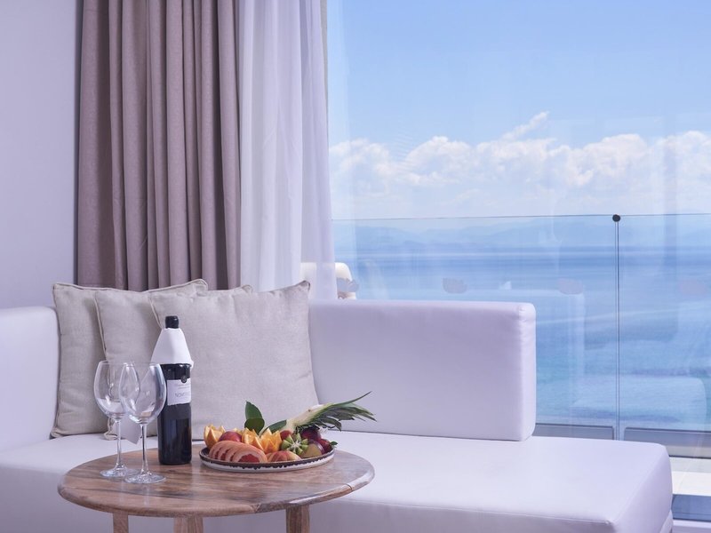 - Superior Double Room Sea View (DZM1), Doppelzimmer, Mindestalter im Zimmer: 16 Jahre, im Hauptgebäude, im Nebengebäude, Meerblick, ca. 25 - 28 m², letzte Komplettrenovierung 2020, Gesamtanzahl der Räume in diesem Zimmertyp: 1, Aufteilung wie folgt: kombiniertes Wohn-/Schlafzimmer, 1 King Size Bett, Klimaanlage: individuell regelbar, kalt, warm, Fußboden: Fliesenboden, Safe: ohne Gebühr, Sofa, Kaffee-/Teezubereiter, Telefon, Internet: WLAN/WiFi: ohne Gebühr, Fernseher: Flatscreen, Sat-TV, Roomservice: gegen Gebühr, Dusche, Bademantel, Slipper, Föhn, Balkon oder Terrasse: mit Liegestühlen