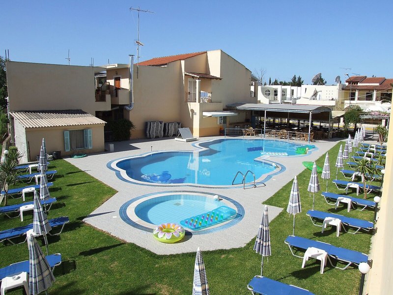 Poloha a okolie: Apartmánový hotel sa nachádza v srdci letoviska, v bezprostrednej blízkosti reštaurácií, barov, supermarketov, obchodov a zastávok verejnej dopravy. Najbližšia pláž s možnosťami vodných športov je od hotela vzdialená len 150 m. Mesto Korfu s pevnosťou, múzeami a autobusovou stanicou je od letoviska vzdialené približne 34 km. Medzi ďalšie atrakcie v okolí patrí Achilleion (približne 38 km), Bella Vista (približne 23 km) a Canal d'Amour (približne 10 km). Apartmánový hotel je vzdialený približne 34 km od letiska Korfu.