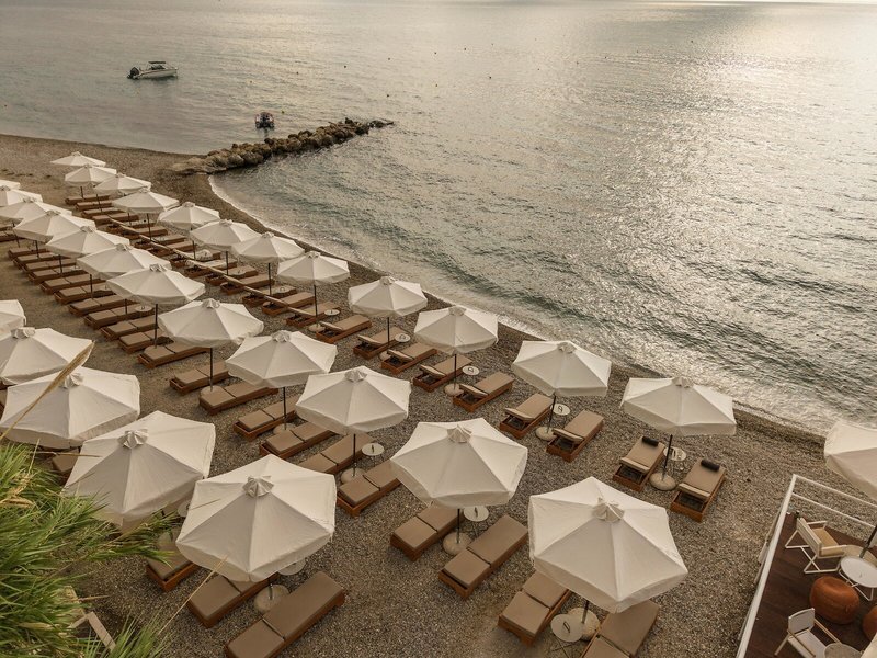 - Pláž: štrková, dĺžka pláže: cca 200 m, verejná s vlastnou hotelovou časťou, ležadlá: zdarma, slnečníky: zdarma.