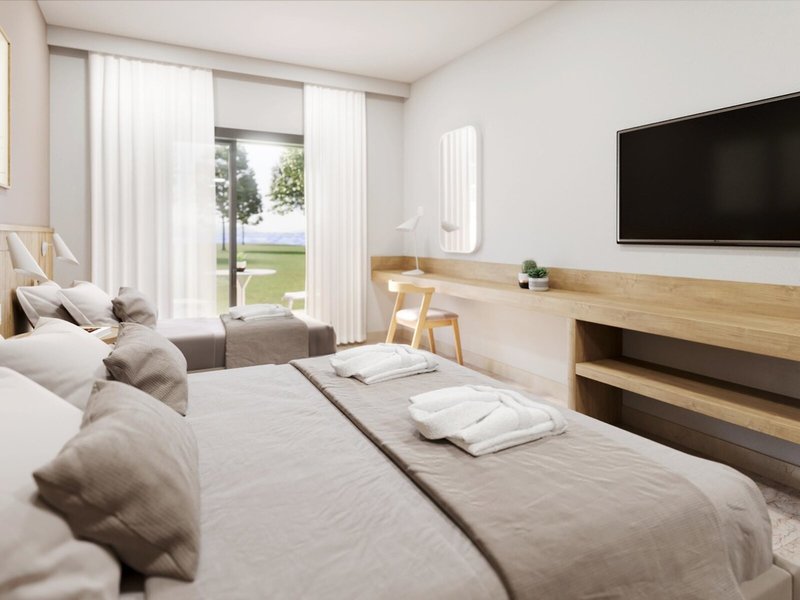 - Double Room (DZX1), Doppelzimmer, Gartenblick, ca. 22 - 25 m², letzte Komplettrenovierung 2025, Gesamtanzahl der Räume in diesem Zimmertyp: 1, Aufteilung wie folgt: kombiniertes Wohn-/Schlafzimmer, 2 Einzelbetten, 1 Zustellbett, Babybett: ohne Gebühr, Anfrage nicht notwendig, Klimaanlage: zentral gesteuert, Heizung: zentral gesteuert, Fußboden: Fliesenboden, Safe: ohne Gebühr, Kühlschrank: ohne Gebühr, Minibar: Wasser: ohne Gebühr, Telefon, Internet: WLAN/WiFi: ohne Gebühr, Fernseher: Sat-TV, Dusche, WC, Föhn, Balkon oder Terrasse: mit Sitzgelegenheit
