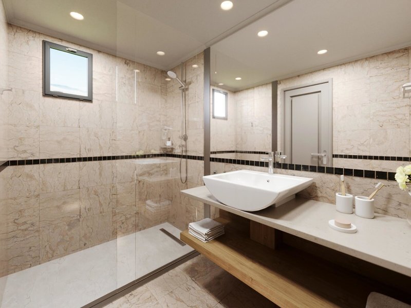 - Dvojlôžková izba s výhľadom na more (DZM1), dvojlôžková izba s výhľadom na more, cca. 22 - 25 m², posledná kompletná rekonštrukcia v roku 2025, celkový počet izieb v tomto type izby: 1, rozloženie: obývacia izba/spálňa, 2 samostatné postele, 1 prístelka, detská postieľka: bezplatne, nie je potrebné požiadať, klimatizácia: centrálne ovládaná, kúrenie: centrálne ovládané, podlaha: dlažba, trezor: bezplatne, chladnička: bezplatne, minibar: voda: bezplatne, telefón, internet: WLAN/WiFi: bezplatne, televízor: satelitná TV, sprcha, WC, fén, balkón alebo terasa: s posedením