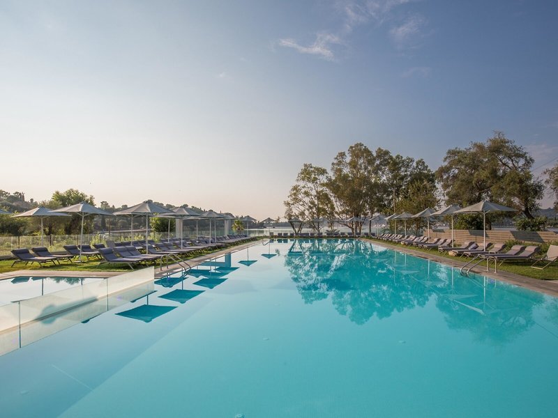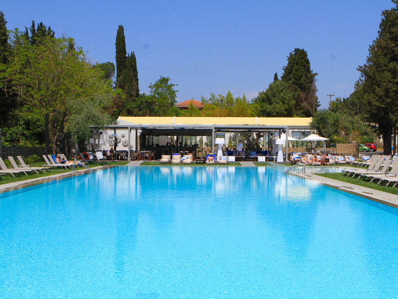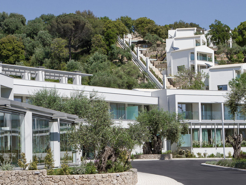 Poloha a okolie Amfiteáter postavený v čarovnej zátoke Kommeno na 28 hektárovom pozemku v jedinečnej zelenej krajine, len 10 km od mesta Korfu, s nerušeným výhľadom na Iónske more a kozmopolitný prístav Gouvia.