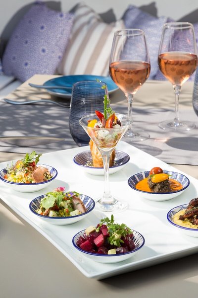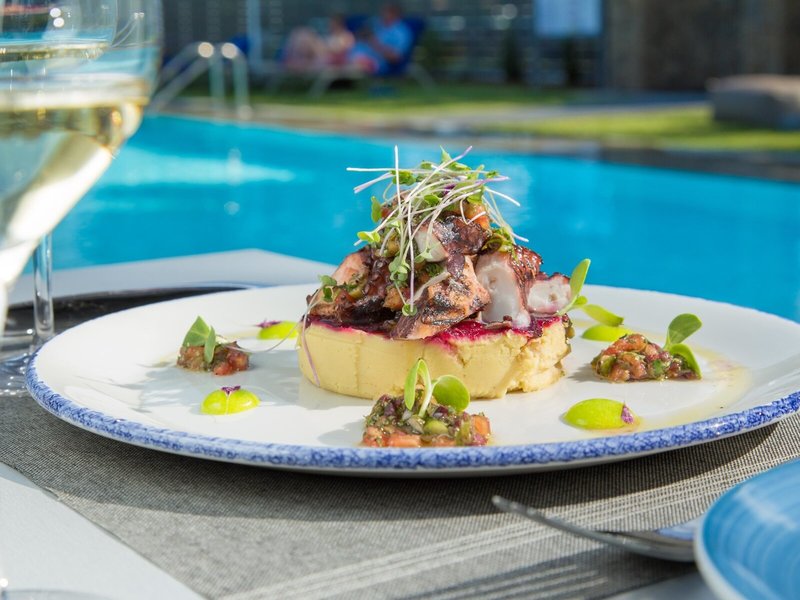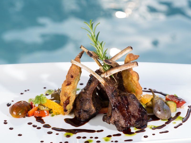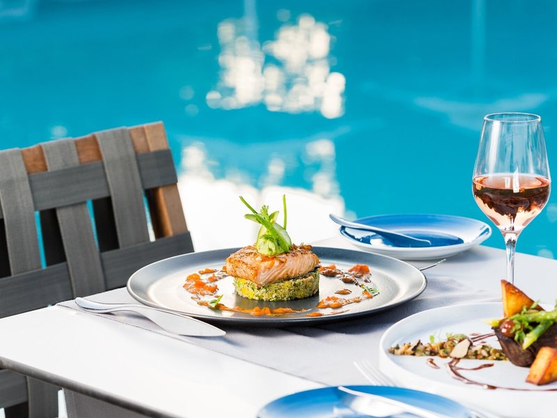 - Restaurant „RR - Rodostamo Restaurant“: Küche: international, mediterran, vegetarische Gerichte, à la carte, 12:00 Uhr - 16:00 Uhr und 19:30 Uhr - 23:00 Uhr, am Pool