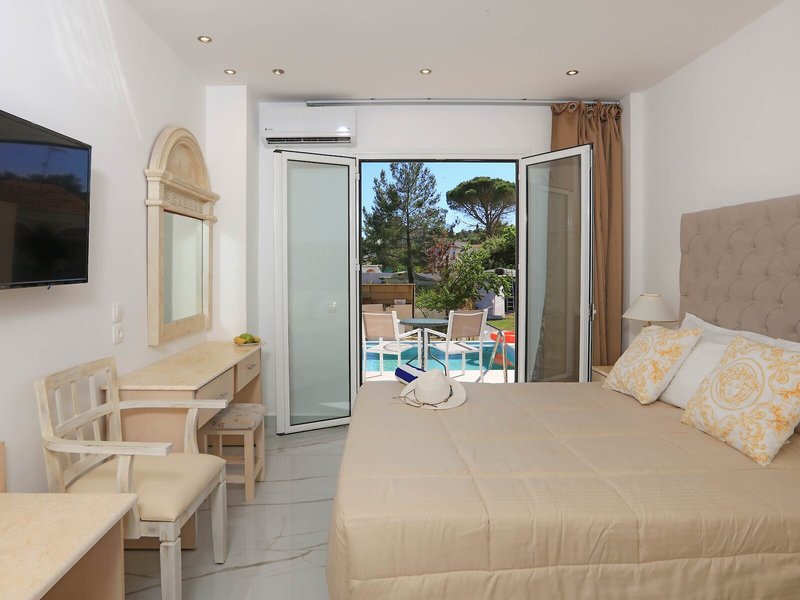- Dvojlôžková izba Superior Swim Up (DZX4), dvojlôžková izba, nefajčiarska izba, minimálny vek v izbe: 18 rokov, v hlavnej budove, strana do záhrady, výhľad na bazén, výhľad na VLASTNÝ BAZÉN, cca 26 - 26 m², posledný komplet renovácia 2022, posledná čiastočná rekonštrukcia 2023, celkový počet izieb v Tento typ izby: 12, 1 manželská posteľ (190x160cm), klimatizácia: zadarmo, individuálne nastaviteľná, studená, teplá, podlaha: dlažba, trezor: zadarmo poplatok, kávovar/čajník, rýchlovarná kanvica, minibar: zadarmo, telefón, internet: WLAN/WiFi, TV: plochá obrazovka, satelitná TV, sprcha, sušič vlasov, kozmetické zrkadlo, balkón alebo terasa: s vlastným bazénom