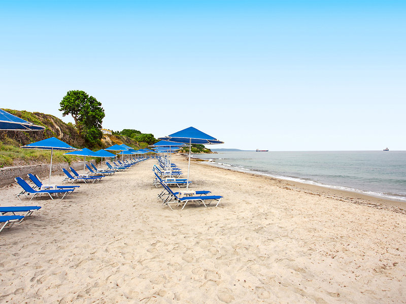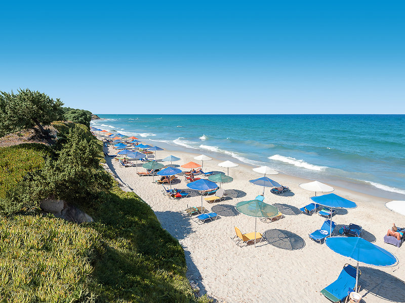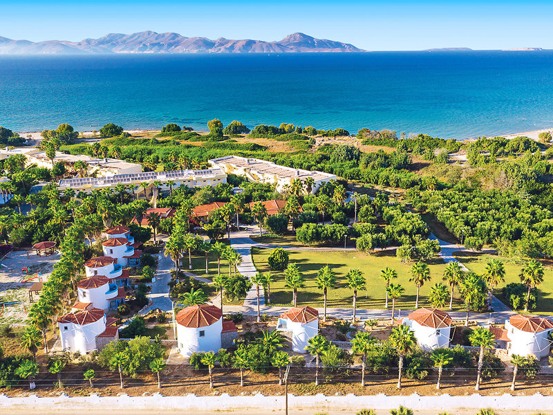 Lage: Oberhalb des flach abfallenden Sandstrandes, teilweise kleinere Felsen an der Wasserlinie. Bis zum Fischerort Mastichari ca. 2 km. Kos-Stadt mit zahlreichen Einkaufs- und Unterhaltungsmöglichkeiten, Restaurants, Tavernen und Bars ist ca. 22 km entfernt. Täglicher Shuttleservice nach Kos-Stadt gegen Gebühr.