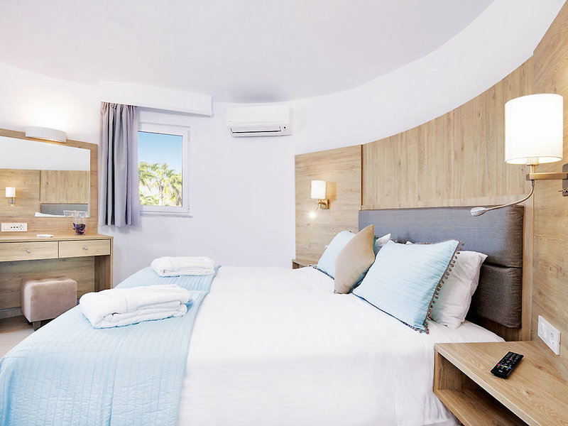 Ubytovanie: Dvojlôžková izba (cca 22 m²), klimatizácia, chladnička, TV, trezor, kúpeľňa, WC, sušič vlasov, balkón alebo terasa, voliteľný výhľad na more (dvojlôžková izba). Maximálna obsadenosť sú 3 osoby, dvojlôžkovú izbu je možné rezervovať aj pre jednu osobu (jednolôžková izba).