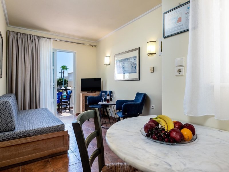 - Appartement Typ2 (APX2), Appartement, Nichtraucherzimmer, Poolseite, Gartenseite, Poolblick, Gartenblick, ca. 43 - 43 m², letzte Komplettrenovierung 2020, bestehend aus 2 Zimmern, optisch getrennt durch Schiebetür, 2 Einzelbetten, 2 Schlafsofas, 0 Zustellbetten, Babybett: Anfrage notwendig, Moskitonetz, Klimaanlage: gegen Gebühr, individuell regelbar, Fußboden: Fliesenboden, Safe, Küche, Kochnische, Kühlschrank, Kochplatte, Mikrowelle, Kaffeemaschine, Kaffee-/Teezubereiter, Wasserkocher, Toaster, Telefon, Internet: WLAN/WiFi: gegen Gebühr, Fernseher: Sat-TV, Roomservice, Badewanne oder Dusche, Föhn, Balkon, Balkon oder Terrasse