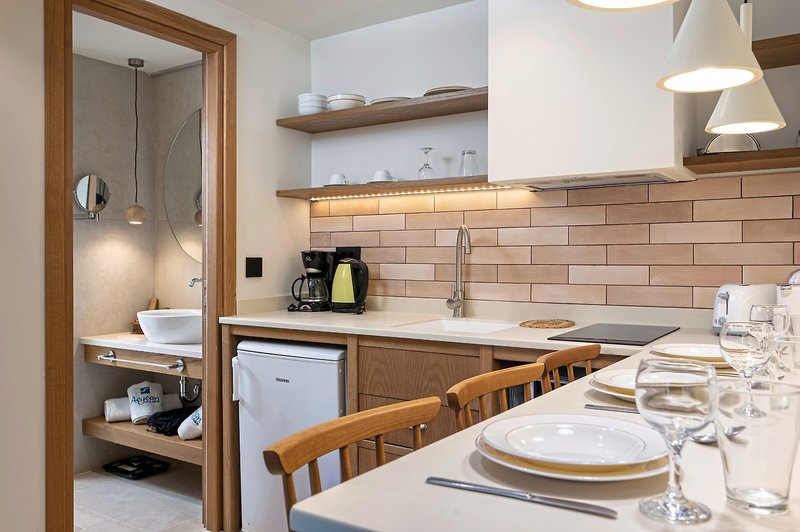 - 41-45 qm, Appartement, Superior, 1 separates Schlafzimmer, kombinierter Wohn-/Schlafraum, Dusche, WC, Haartrockner, Klimaanlage, Safe (kostenpflichtig), TV (Sat-TV), Küche, Kühlschrank, Balkon oder Terrasse, Privatpool
