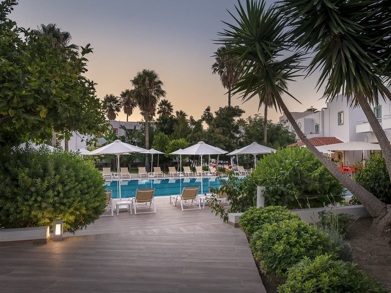Poloha a okolie Tento hotel sa nachádza na pokojnom mieste v centre mesta Kos, vo štvrti Psalidi. Do prístavu je to len asi 200 m a na hlavné pláže je to asi 400 m. Turistické centrum mesta Kos je vzdialené asi 2,5 km. Vzdialenosť od letiska: cca 35 km.