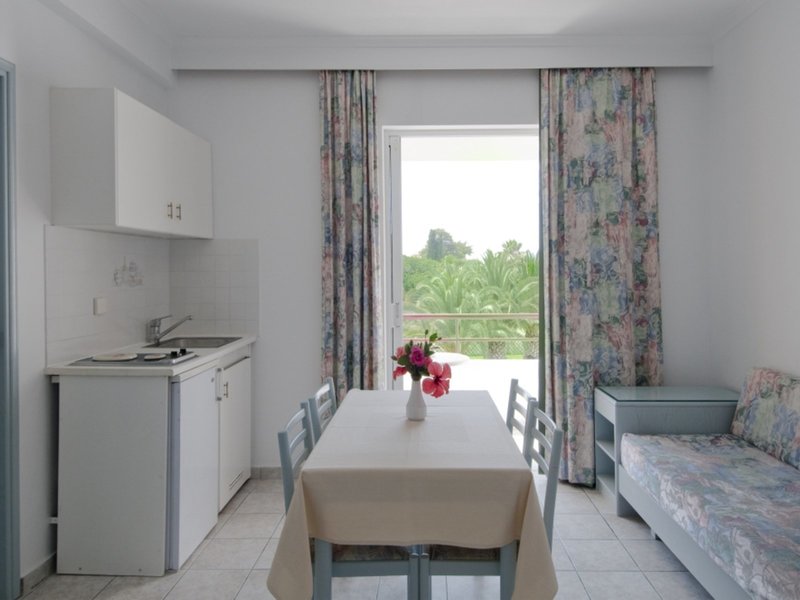 - Štandardné štúdio (STX1), v hlavnej budove, výhľad na bazén, výhľad do záhrady, cca 25 m², 2 samostatné postele, individuálne ovládateľná klimatizácia, dlažba, trezor, kuchynský kút, chladnička, príslušenstvo na prípravu kávy/čaju, telefón, WiFi, plochá TV, satelitná TV, rádio, upratovacia služba, dažďová sprcha, WC, fén, balkón